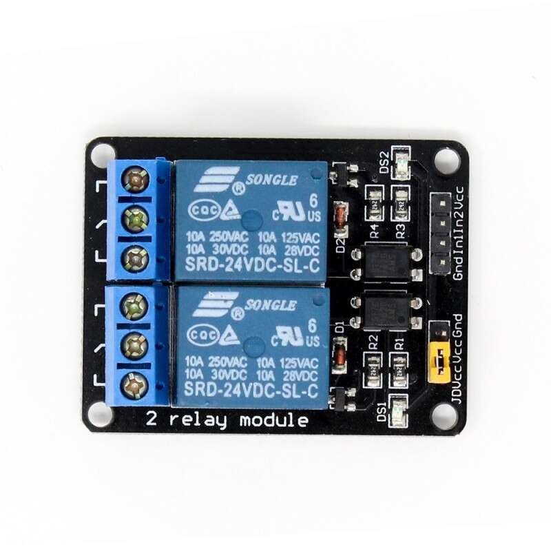 Built-in opto-isolators provide safety and prevent interference between the control side and the load, while flyback diodes safeguard microcontrollers and PLCs from relay coil voltage spikes. This relay module integrates seamlessly with Arduino, ESP32, Raspberry Pi, PLCs, and other control systems, making it suitable for IoT projects, home automation, industrial automation, and robotics applications that require reliable dual load switching.