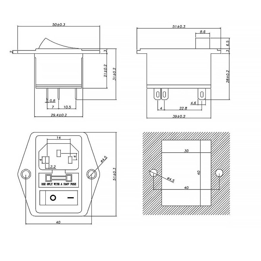 3-in-1 Design: Combines AC power inlet, fuse holder, and ON/OFF rocker switch.