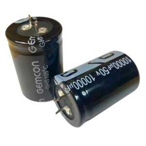 The 10000µF 50V electrolytic capacitor stores energy and filters voltage in medium-power circuits. It works well in power amplifiers, motor controllers, and industrial DC supplies. The aluminum construction delivers high capacitance and handles strong ripple current. It stabilizes voltage and reduces ripple under heavy loads. You can mount it easily on a through-hole PCB. Polarity markings help ensure correct installation. A pressure relief vent enhances safety under fault conditions. The cylindrical case fits large PCB footprints. It operates reliably from –40°C to +105°C. RoHS compliance supports modern and eco-friendly product designs.