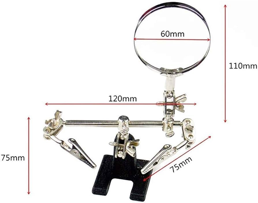 The JM501 Welding Magnifying Glass is a 5X desktop magnifier equipped with adjustable alligator clips, making it the perfect “third-hand” tool for precision work like PCB soldering, electronics repair, jewelry assembly, and other tasks requiring magnification and stability. The large optical lens delivers clear, distortion-free magnification, while the dual auxiliary clips securely hold wires, boards, or components in place.