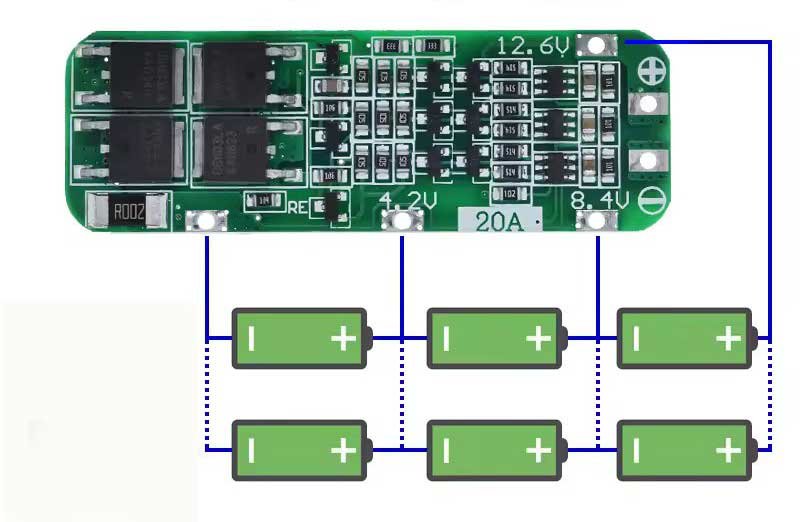 Lithium Battery Charger Protection Module (BMS) 3S 20A 12.6V