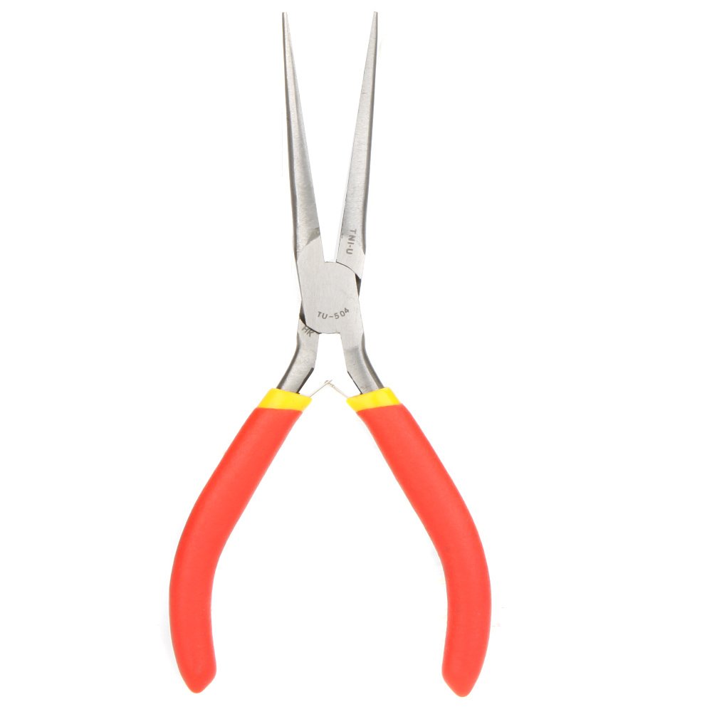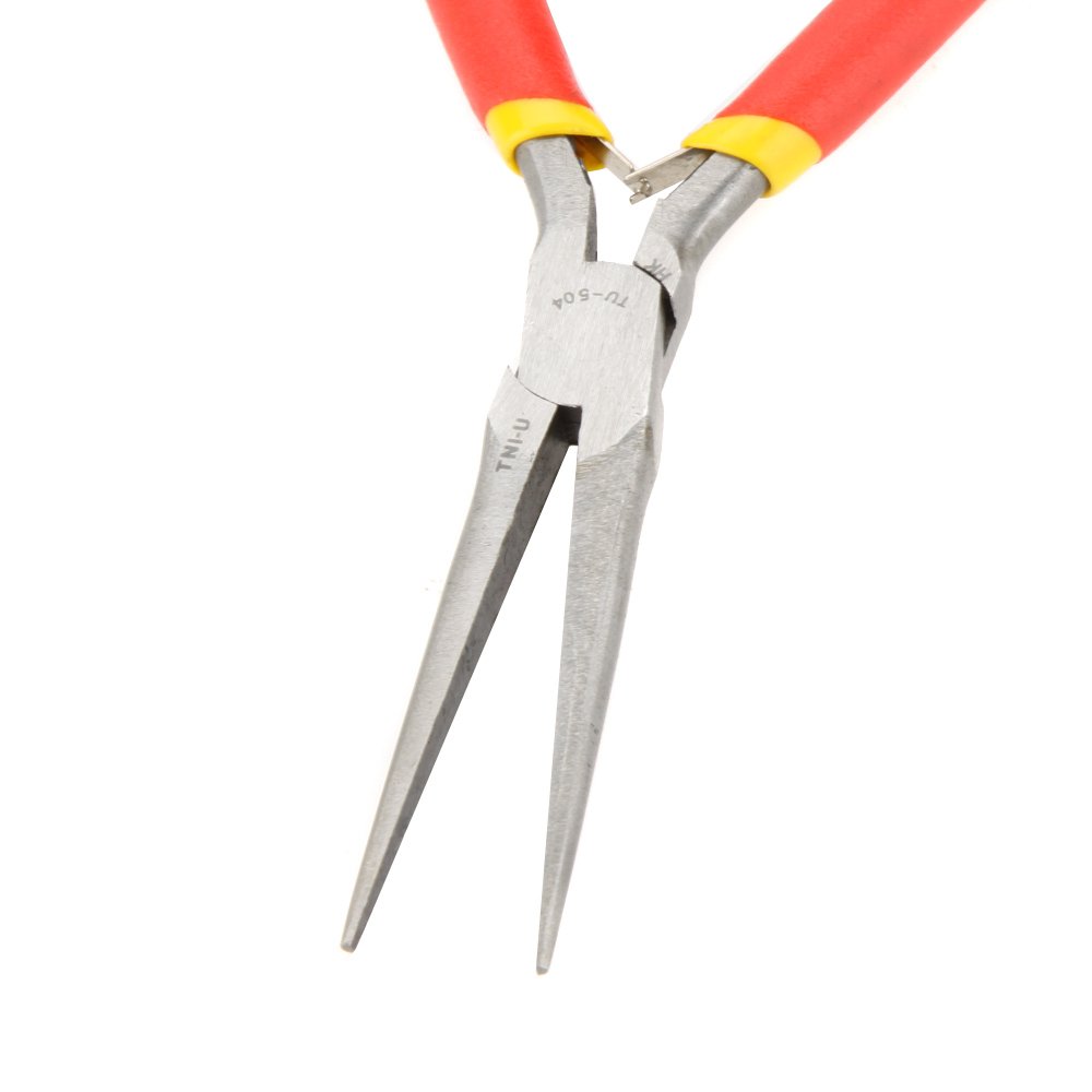 High-quality TNI-U TU-504 long nose pliers with ergonomic grip and precise tips for electronics, wiring, crafting, and fine mechanical work.