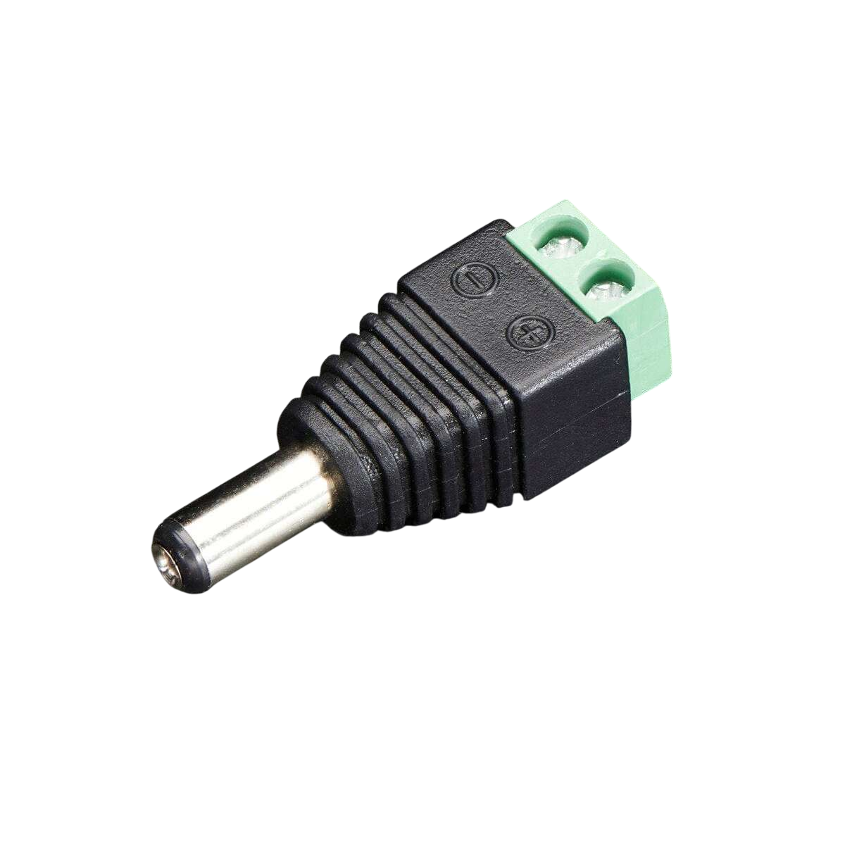 Male DC Jack Adapter 5.5mm x 2.1mm with screw terminal block for easy, solderless DC power connections. Ideal for CCTV, LED strips, and quick prototyping.