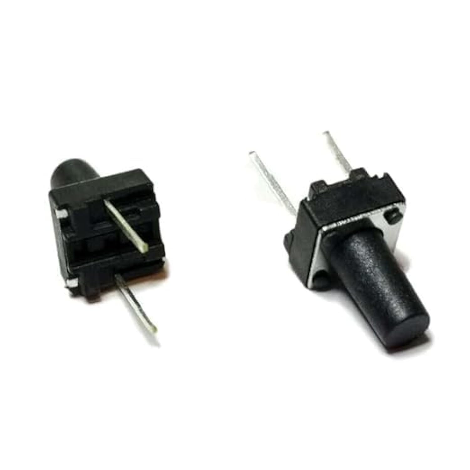 Mini push button 6x6x12mm, 2-pin tactile switch. Tall actuator for deeper panels and compact electronics needing precise and reliable momentary control.