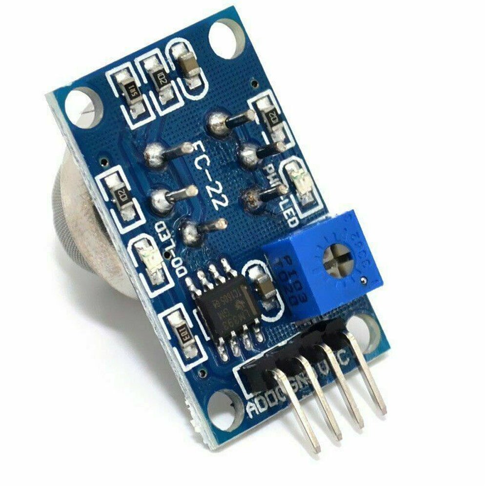 This sensor uses a semiconductor material called tin dioxide (SnO2). When harmful gases are present, the sensor’s resistance decreases. This change causes the sensor’s output voltage to increase, indicating higher gas levels. The module outputs an analog signal that microcontrollers like Arduino, ESP32, or Raspberry Pi can easily read and process. Additionally, the module includes a digital output pin. You can set a threshold on this pin to trigger alarms or ventilation systems when gas concentration passes a safe limit. The sensor has a built-in heater powered by 5V, which maintains the sensor’s temperature for accurate and stable detection. Before using, the sensor needs a warm-up time of about 20 seconds.