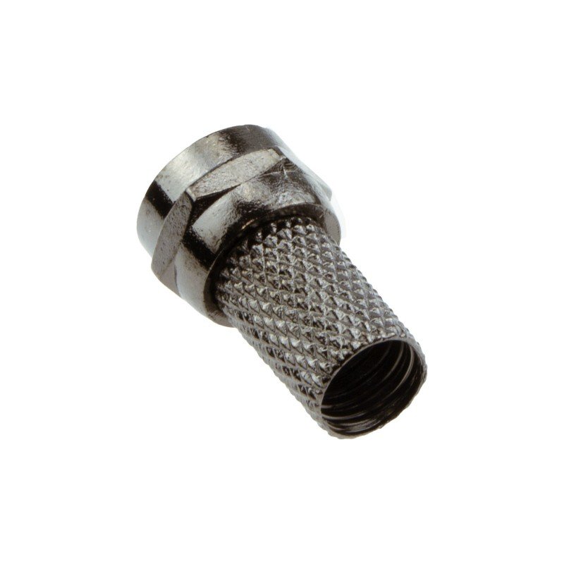 RG6 F-Type coaxial cable connector for TV, satellite, CCTV. Threaded, nickel-plated, low-loss, and corrosion-resistant. Secure signal transmission up to 3 GHz.