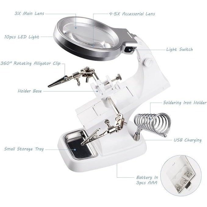 The TH-7023B Magnifying Glass with Light and Stand is a professional-grade magnification tool designed for precision inspection, soldering, and detailed assembly work, especially in PCB repair and industrial electronics.