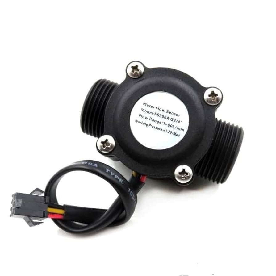 The Water Flow Sensor FS300A G3/4 is a high-quality liquid flow sensor designed for accurate measurement in medium to high water flow applications. Built with a durable plastic body and an internal rotor, the sensor uses Hall-effect technology to detect the speed of the water flow and convert it into a digital pulse signal. Its G3/4 thread makes it compatible with standard piping systems, ensuring easy installation in residential, industrial, and agricultural setups. This sensor is ideal for monitoring, controlling, and regulating water usage in real-time with microcontrollers like Arduino, ESP32, or Raspberry Pi.